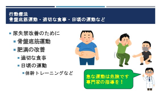 失禁が改善するまでの間、薬物療法を行うオプションはありますので適宜、泌尿器科の先生にご相談ください。