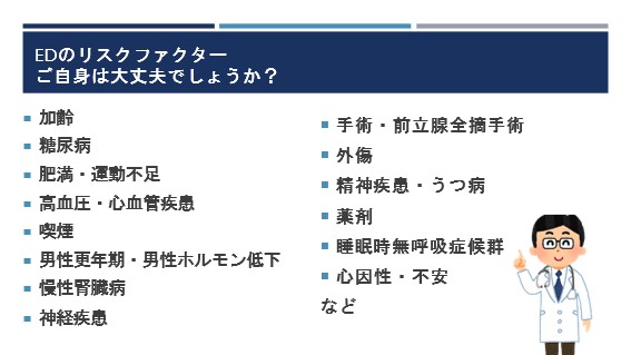 EDを認める場合、まず、大事なことは問診や原因がないか検討することです。