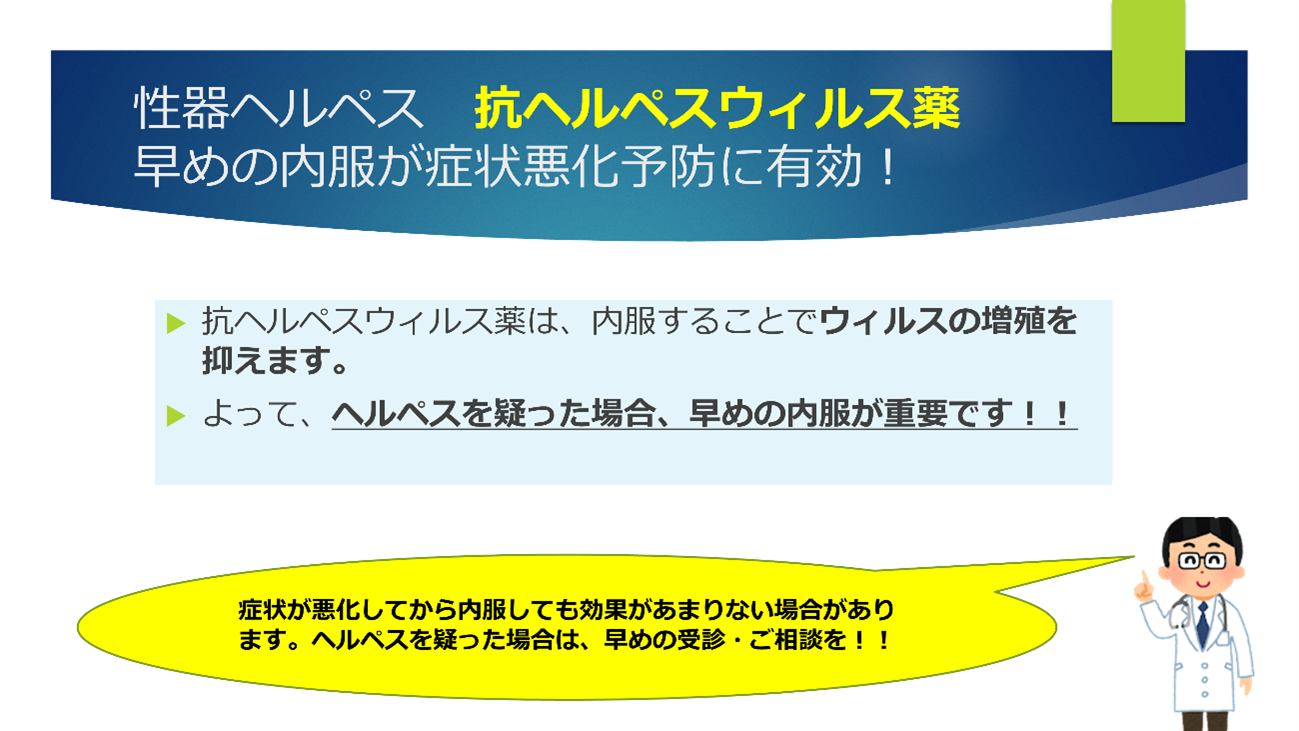 ヘルペスを疑った場合は、早めの受診、相談が悪化予防に重要です!
