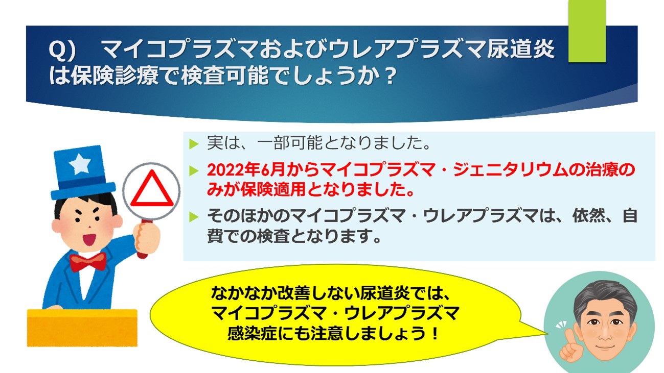 マイコプラズマおよびウレアプラズマ尿道炎は保険診療で診断、治療が可能でしょうか?