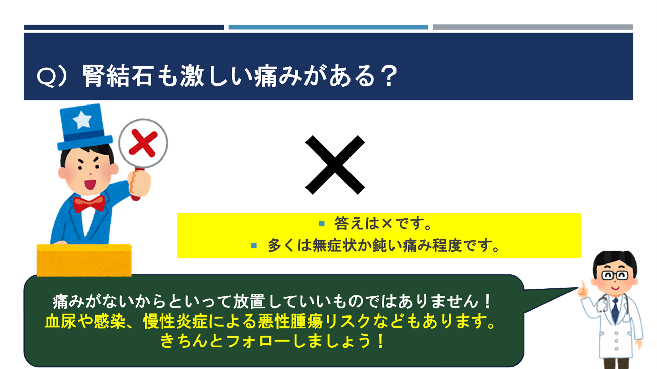 腎結石がある患者さんは、エコーやレントゲンで定期的にフォローしましょう。