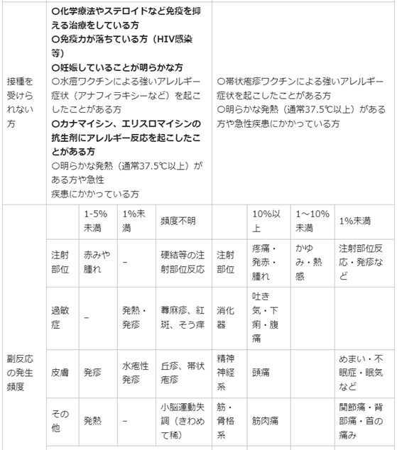 ※出典:生ワクチン(乾燥弱毒生水痘ワクチン)、不活化ワクチン(乾燥組換え帯状疱疹ワクチン)取扱説明書、厚生科学審議会予防接種・ワクチン分科会資料
