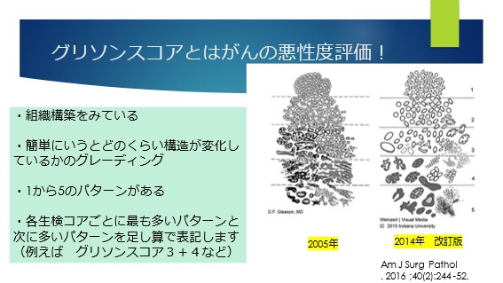 この診断は、ISUP(アイサップと読みます)(国際泌尿器病理学会)という学会のコンセンサス会議を経て改訂をされています。最近では2014年に改訂がありました。